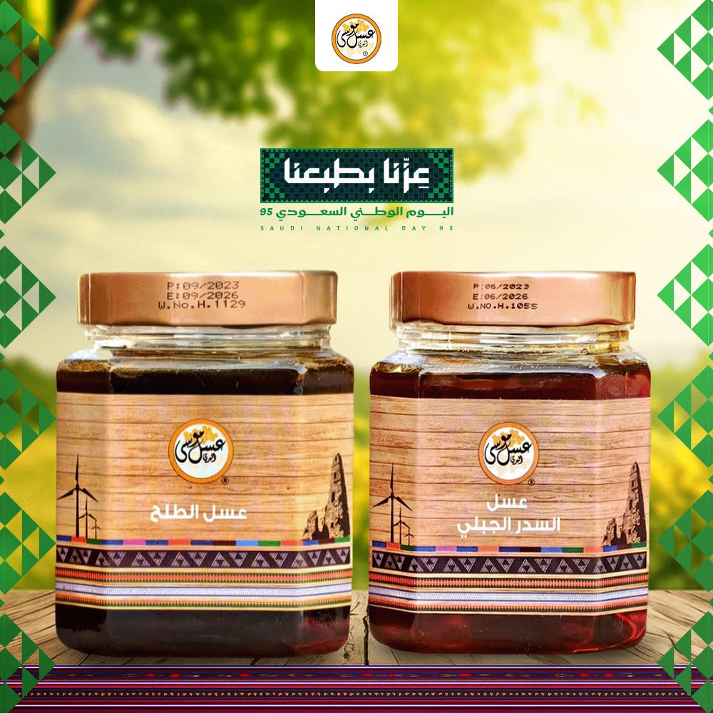 استعد كي تخوضَ تجربةً لا تُنسَ في طعم العسل المثالي من خلال هذا العرض المميز الذي يجمع لك بين عسل السدر والطلح حيث يمتاز كلاً من هذين العسلين بالكثير من المميزات الرائعة التي تجذب العملاء لمنتخب الموسى وخاصةً أنّ المنتجين معاً تم تقديمها في عرضٍ رائع.